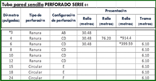 Tipos de perforaciones: en ranura y circular.
